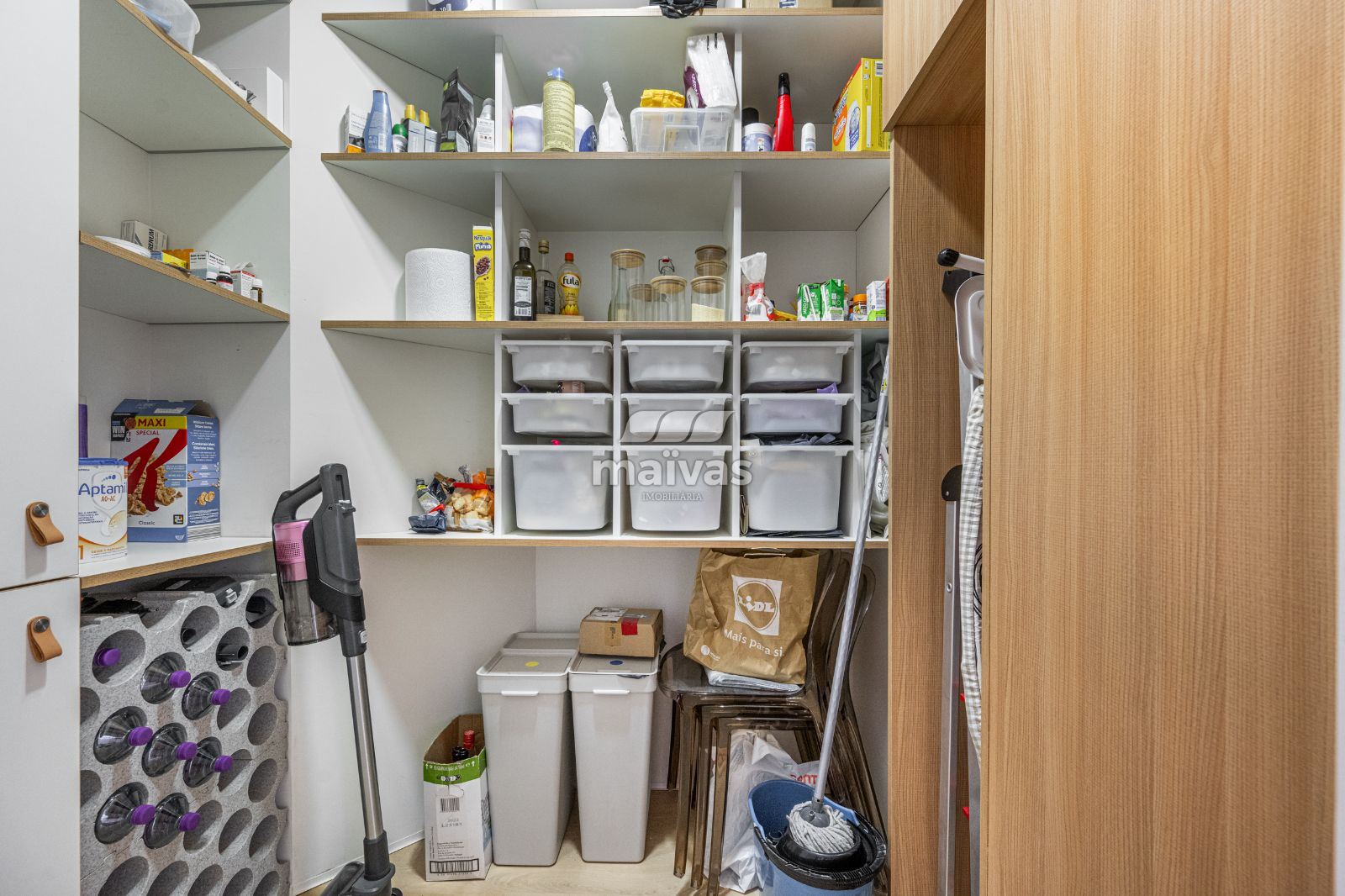 - Despensa funcional, proporcionando apoio e arrumação à cozinha;