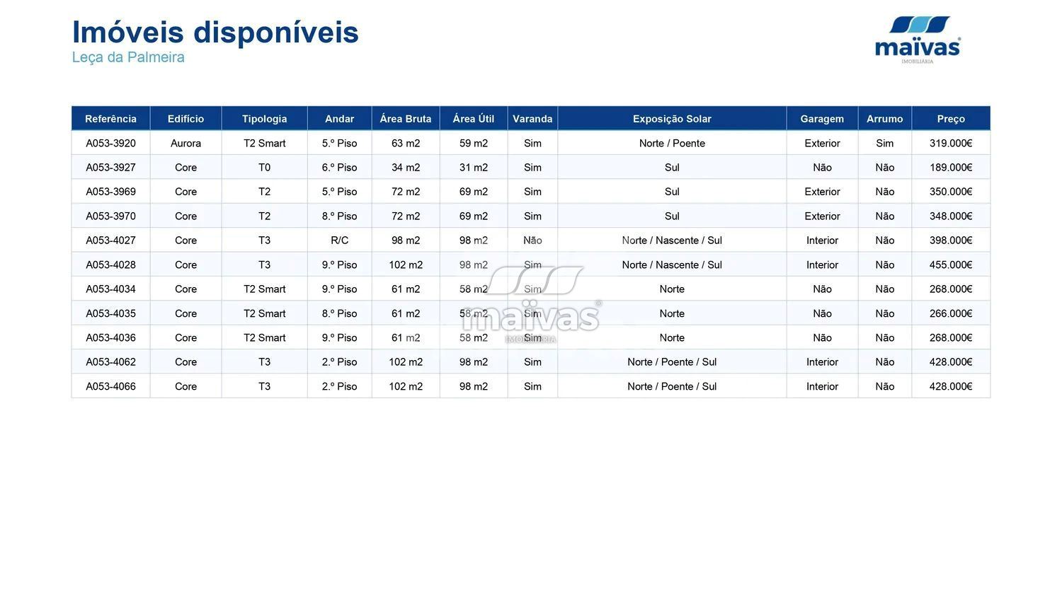 ⚠️ Todas as informações presentes nesta página requerem confirmação junto de uma Agência ou Profissional Maïvas.