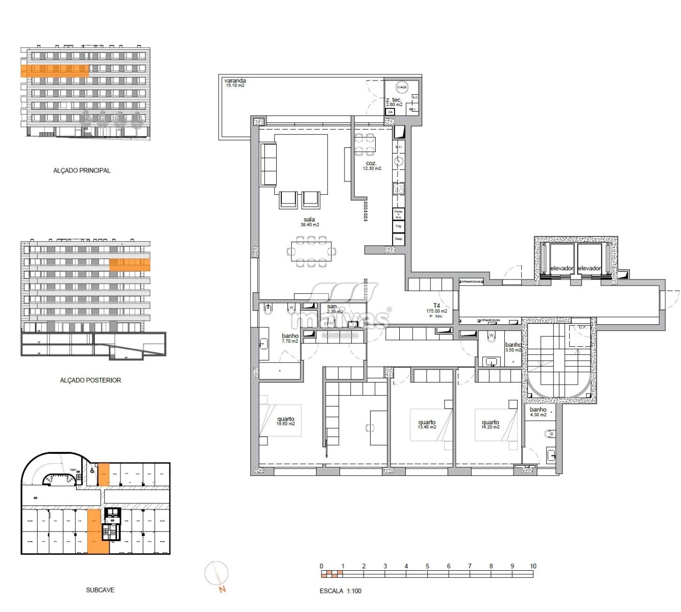 - Fração no penúltimo piso, com três frentes solares: Norte, Sul e Poente;