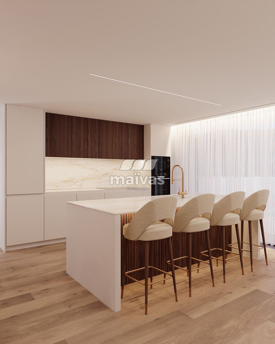 • Zona social em conceito open space, onde a cozinha totalmente equipada com eletrodomésticos de encastre de gama superior se articula de forma fluida com a sala de estar e de jantar